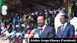 ጠቅላይ ሚኒስትር አብይ ሥልጣን ከያዙ በኋላ ከጂጂጋ ቀጥሎ ሁለተኛው በሆነው በዛሬ የአምቦ ጉብኝታቸው ምክትላቸው አቶ ደመቀ መኮንን፣ የኦሮሚያ ክልል ፕሬዝዳንት አቶ ለማ መገርሳና ሌሎች የፈዴራል ባለስልጣናት አብረዋቸ የተጓዙ ሲሆን በቀረቡት ንግግሮች “ቄሮዎች”ን ተመስግነዋል።