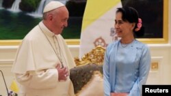 ለሮሒንግያሙስሊሞች ቀውስ መፍትሔ ለማፈላለግ ትናንት ሰኞ ሚያንማር የገቡት የሮማው ርዕሰ ሊቃነ ጳጳሳት አባ ፍራንሲስ፣ ከአገሪቱ የሲቪል መሪ ኡን ሳን ሱ ቺ ጋር ተገናኝተው ባደረጉት ንግግር፣ የሮሒንግያን ቀውስ ሳያነሱ ባጠቃላይ የአንድነት ጥሪ ማሰማታቸው ተገለጸ።
